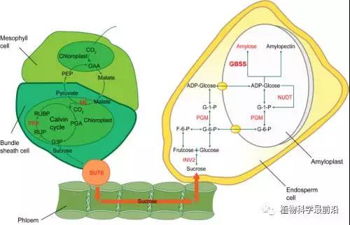 A model of amylose/amylopectin biosynthesis pathway.
