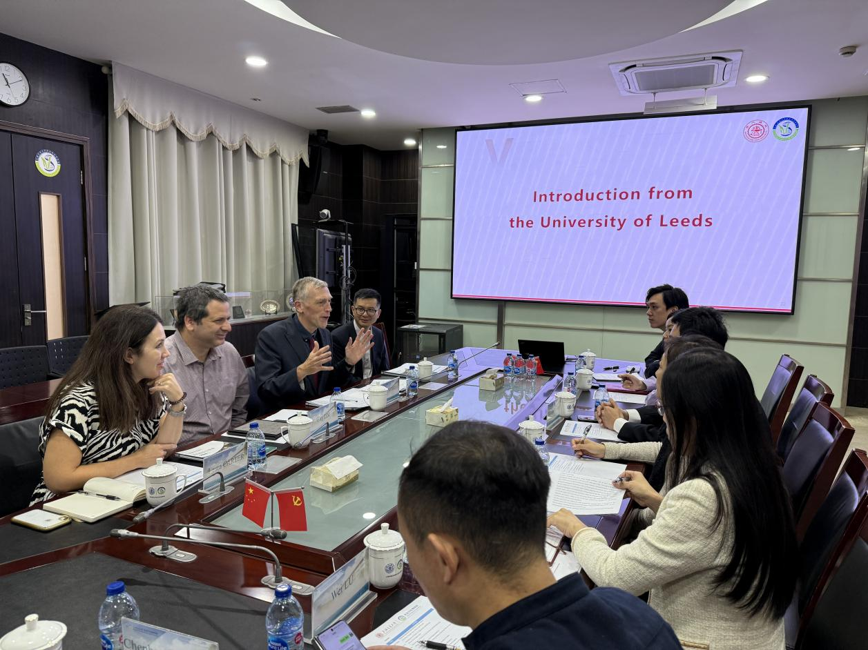 2024年11月7日上午,英国利兹大学生物科学学院协理副院长Ian Wood,环境学院协理副院长Guy Ziv,环境化学教授Laura Carter,国际科研与创新发展主任(亚洲)Hongsen Peng一行访问了taptap点点投注,taptap下载ios游戏及生命科学技术学院参与了此次交流。taptap点点app官方网站院长助理高泓博,资源与环境系长聘教轨副教授陈钦程、副教授赵琦、博士后周睿人,食品科学与工程系副教授鲁伟,合作交流办公室王之皓、郝雨璇、白玲参会;生命科学与技术学院副院长李丹,研究员张晨虹,研究生教务夏娟,外事秘书李吴頔参会;转化医学院毕磊老师也参加了此次交流。会议由高泓博主持。