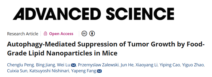 Advanced Science—食品胶体科学课题组发文揭示食品级脂质纳米颗粒通过自噬介导抑制小...
